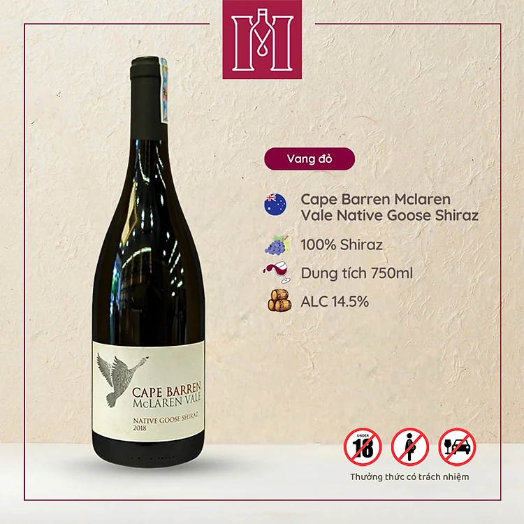 Rượu vang đỏ Úc Cape Barren McLaren Vale Native Goose Shiraz 750ml 14.5% nhập khẩu - Hàng chính hãng