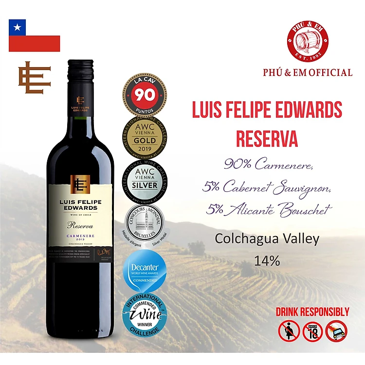 Rượu Vang Đỏ Chile Luis Felipe Edwards Reserva Carmenere