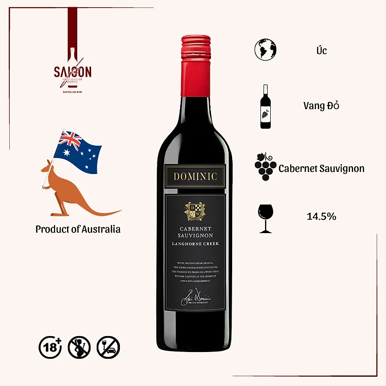 Rượu Vang Đỏ Dominic BLACK LABEL Cabernet Sauvignon 750ml 14.5% Acl