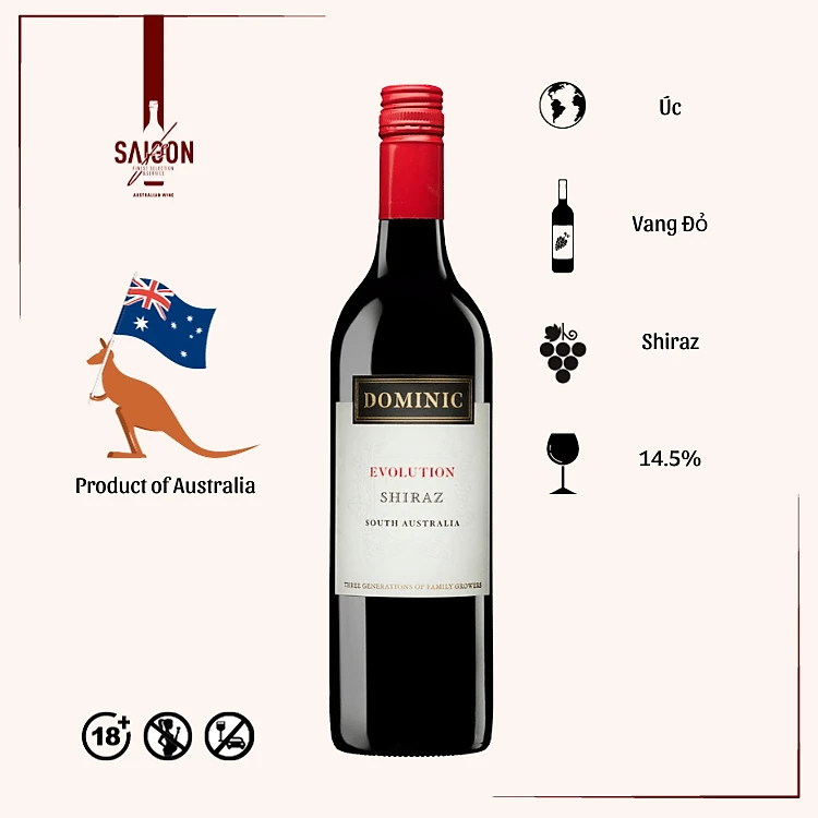 Rượu Vang Đỏ Dominic EVOLUTION Shiraz 750ml 14.5% Acl