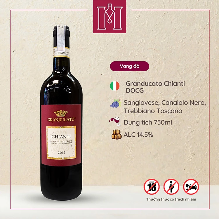 Rượu vang đỏ Ý Granducato Chianti DOCG by Bersano 750ml 12.5% nhập khẩu - Hàng chính hãng