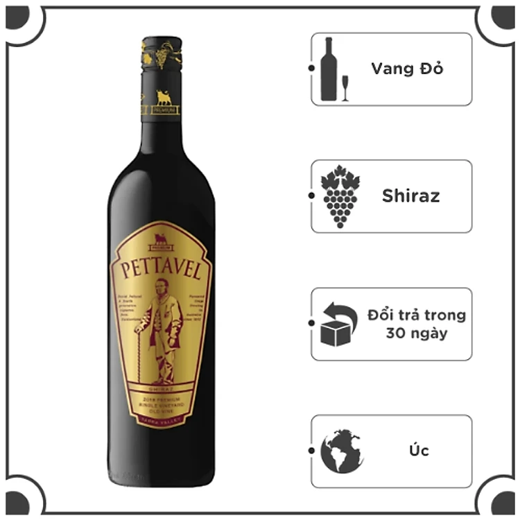 Rượu vang đỏ Pettavel Premium Old Vine Shiraz 2019 750ml 15% Alc