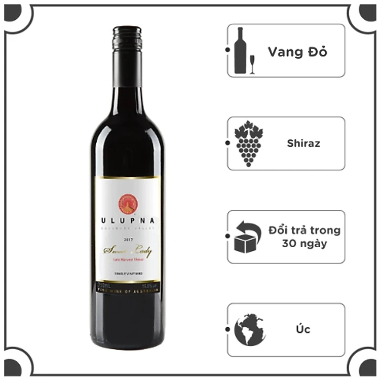 Rượu vang đỏ Ulupna Sweet Lady Shiraz 2017 750ml 14.5% Alc