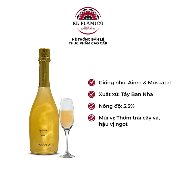 Rượu vang sủi Tây Ban Nha Sparkling Fogoso Oro 750ml (5.5%)