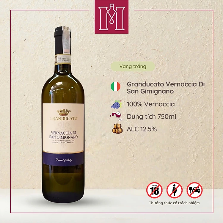 Rượu vang trắng Ý Granducato Vernaccia Di San Gimignano by Bersano 12.5% 750ml nhập khẩu - Hàng chính hãng
