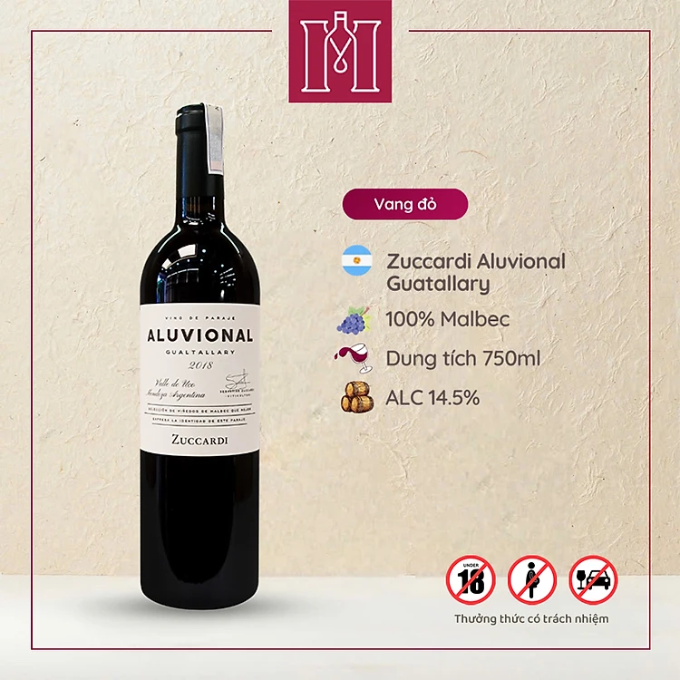 Rượu vang đỏ Argentina Zuccardi Aluvional Guatallary 750ml 14.5% nhập khẩu - Hàng chính hãng
