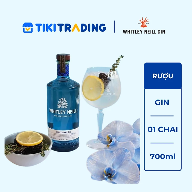 Rượu Whitley Neill Handcrafted Blackberry Gin 43% (700ml) - Không hộp