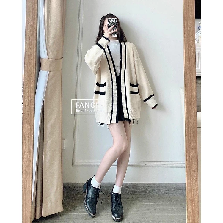 ÁO CADIGAN , áo khoác Cardigan Họa Tiết Kẻ Ô, Áo Khoác Nữ Len Dày Dặn