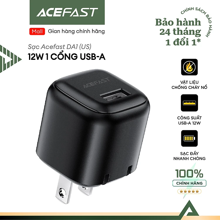 Sạc Acefast 12W 1 cổng USB-A (US) - DA1 Hàng chính hãng Acefast