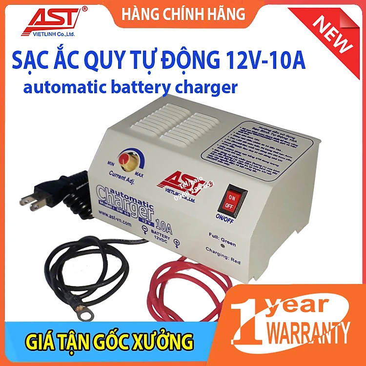 Sạc bình ắc quy tự động 12V 10A AST - Hàng chính hãng - do Công ty Việt Linh AST sản xuất, điều chỉnh được dòng sạc, tự ngắt khi đầy và tự động sạc lại khi bình cạn, chống ngược cực