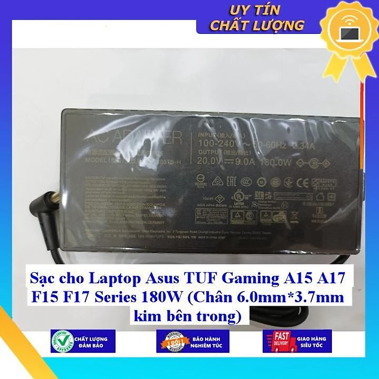 Sạc cho Laptop Asus TUF Gaming A15 A17 F15 F17 Series 180W (Chân 6.0mm*3.7mm kim bên trong) - Hàng Nhập Khẩu New Seal