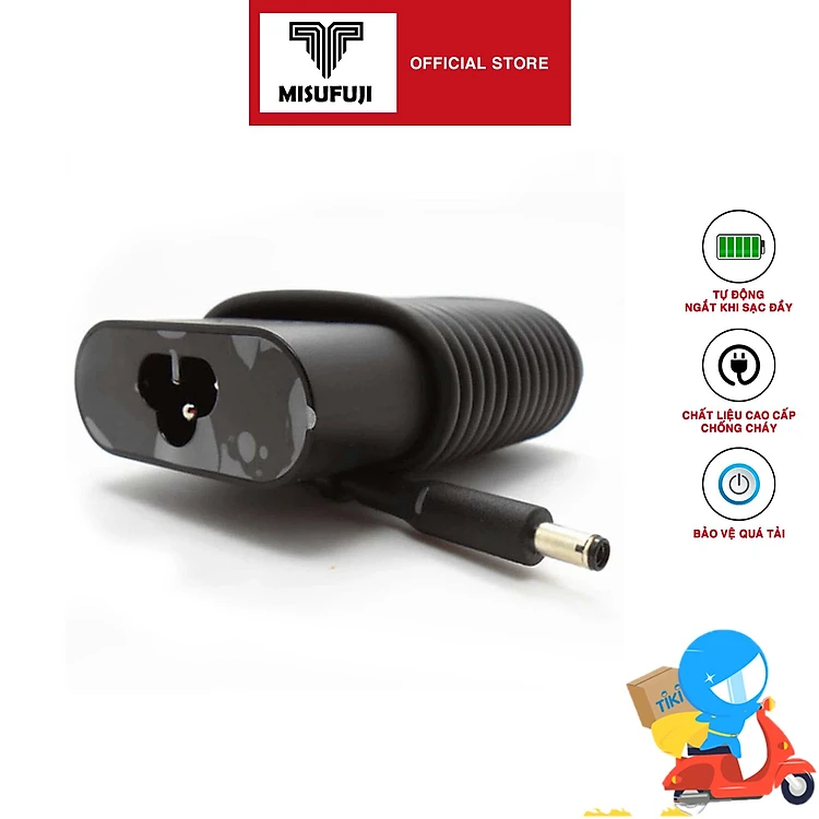 Sạc dành cho Laptop Dell Vostro Inspiron Latitude XPS - Hình OVAL 3.34a - công suất 65w - Chân kim nhỏ 4.5mm - Tặng kèm dây nguồn - Hàng Nhập Khẩu New Seal