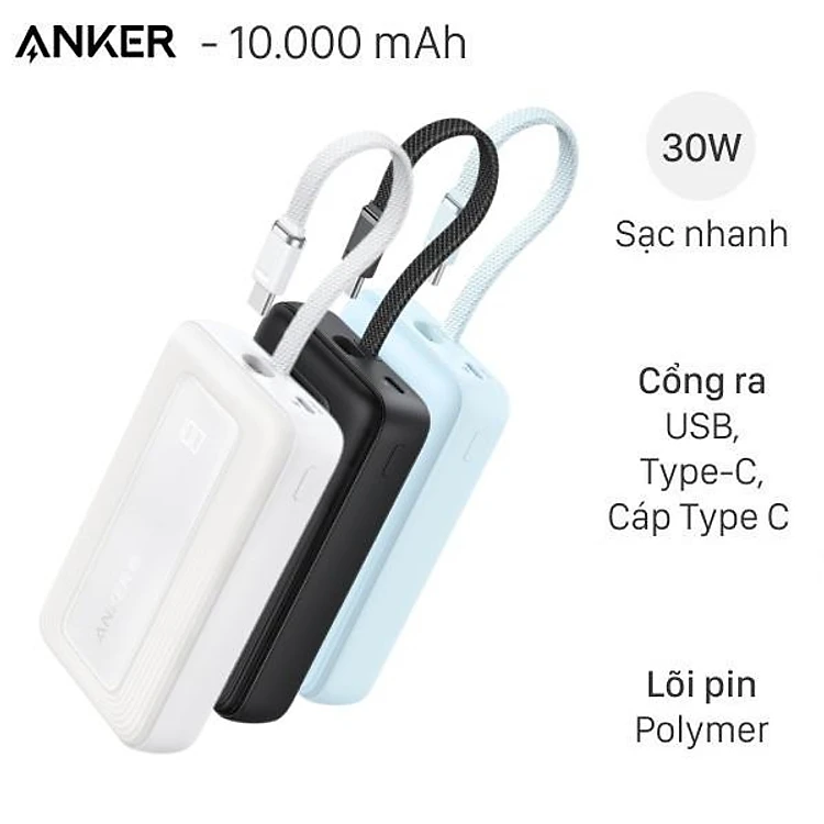 Sạc dự phòng Anker Zolo Power Bank 1USB 1Type-C 30W 10000mAh A1688/20000mAh A1689 - Hàng chính hãng