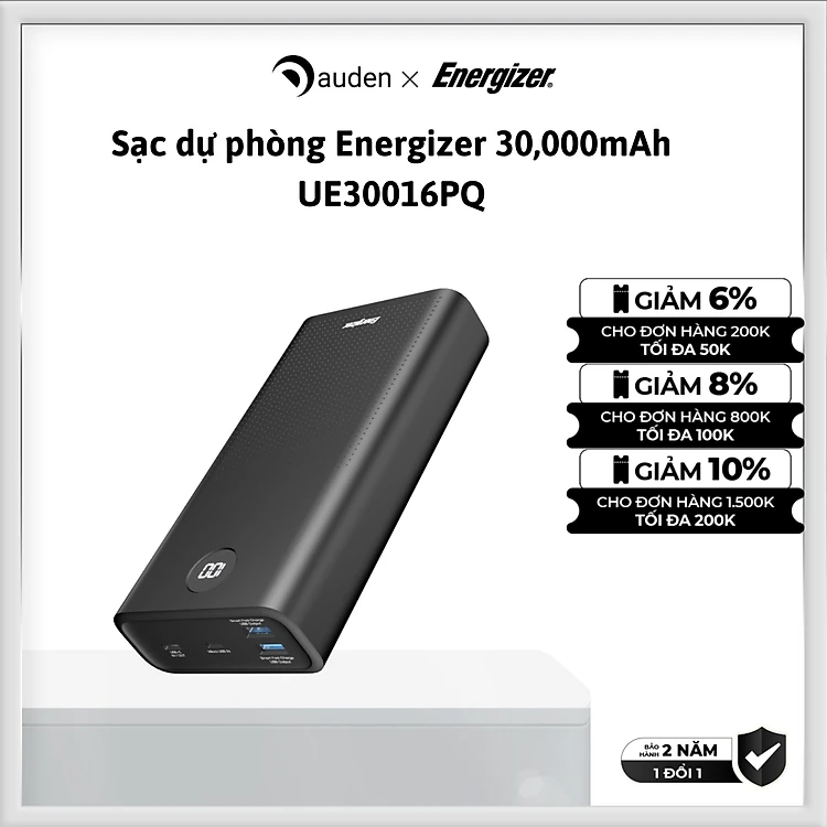 Sạc dự phòng Energizer 30,000mAh UE30016PQ, hỗ trợ sạc nhanh 20W đa nền tảng - Hàng chính hãng bảo hành 1 đổi 1 2 năm