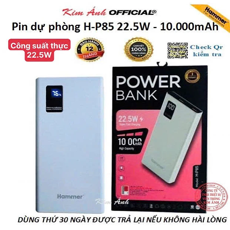 Sạc dự phòng Ham mer H-P85 22.5W - 10.000mAh, Kim Ánh cam kết hàng chính hãng bảo hành 12 tháng