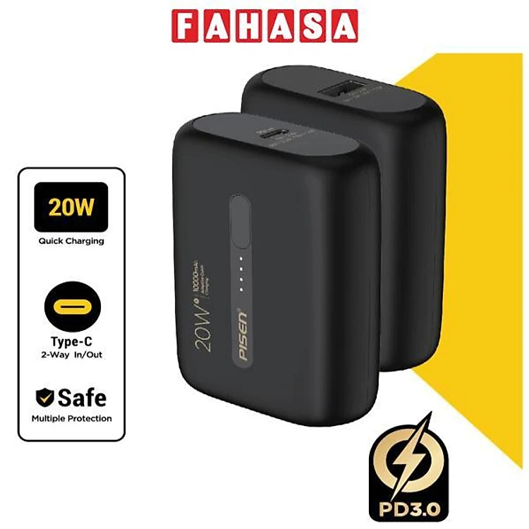 Sạc Dự Phòng Pisen Quick - Power Tiny 20W 10000mAh - Pisen TS-D304 - Màu Đen