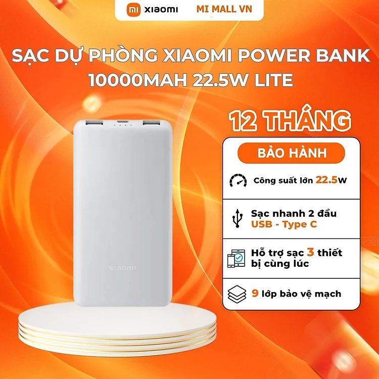 Sạc Dự Phòng Xiaomi Power Bank 10000mAh 22.5W Lite TH | Sạc Nhanh | Sạc Cùng Lúc Nhiều Thiết Bị | Bảo Hành 12 Tháng | Hàng Chính Hãng