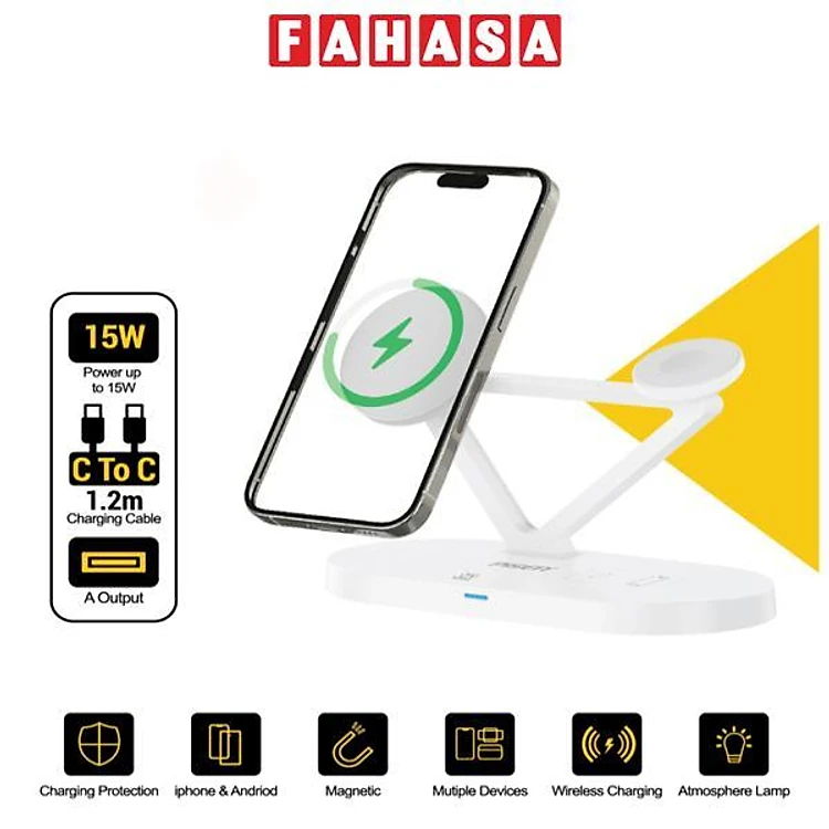 Sạc Không Dây 3 Trong 1 Pisen Pro - Wireless 3-in-1 Night Light - Màu Trắng