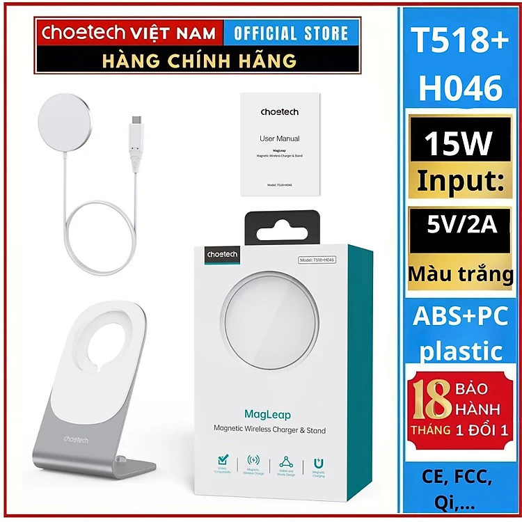 Sạc không dây Choetech T518 Mag-safe có chuẩn sạc QI (Hàng chính hãng)