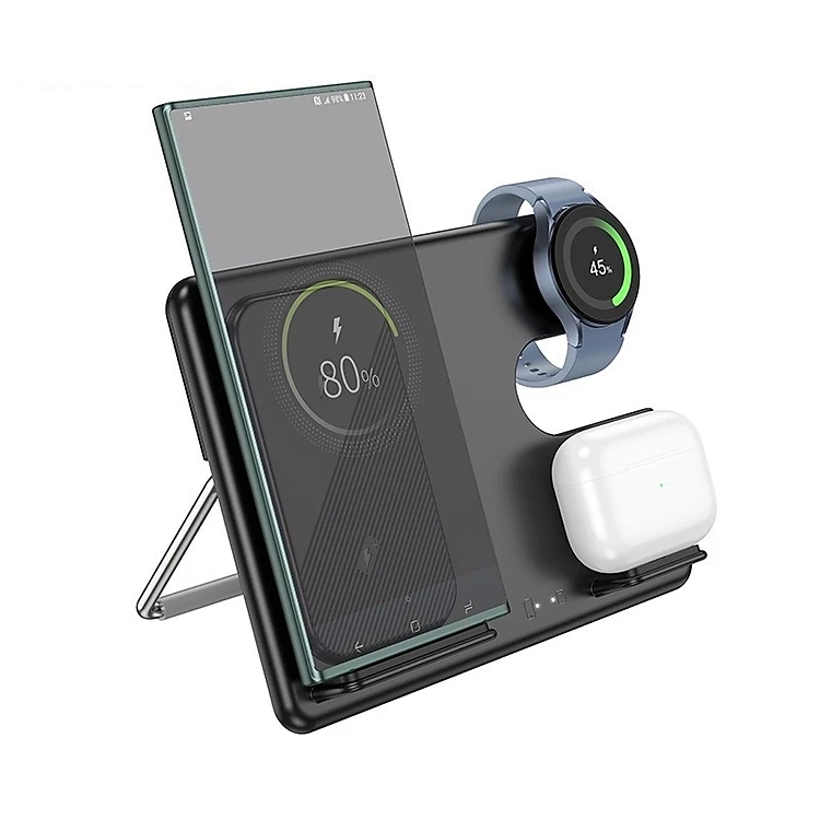 Sạc nhanh không dây 15w cao cấp đa năng 3 trong 1 cho điện thoại, tai nghe, đồng hồ - Hàng nhập khẩu