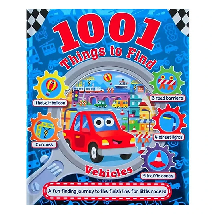 Race to the finish line in this fantastic finding adventure! With over 1000 vehicle items to find, from spanners and cogs, to kites and bikes, there are hours of vehicle fun inside.