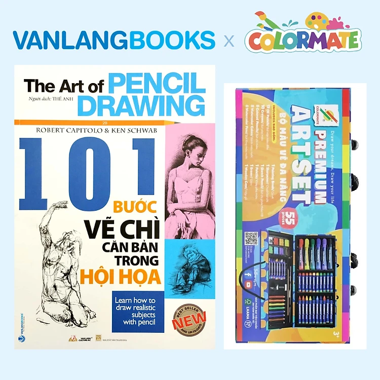 Sách 101 Bước Vẽ Chì Căn Bản Trong Hội Họa + Bộ Màu Vẽ Đa Năng Hộp Giấy M55 - Vanlangbooks x Colormate