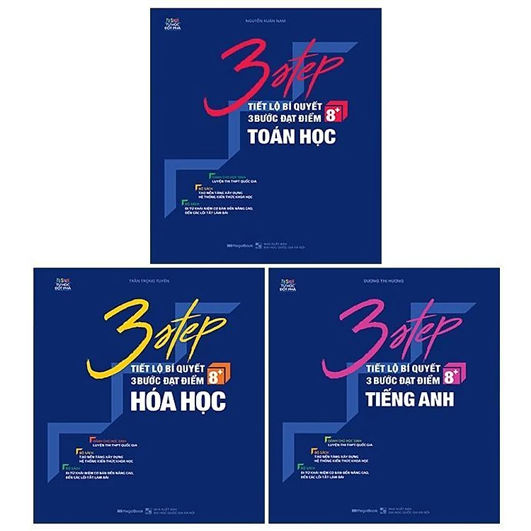 Sách - 3 STEP Khối D7 - Tiết Lộ Bí Quyết 3 Bước Đạt Điểm 8+ - Toán Học + Hóa Học + Tiếng Anh - Combo 3 Cuốn - Megabook