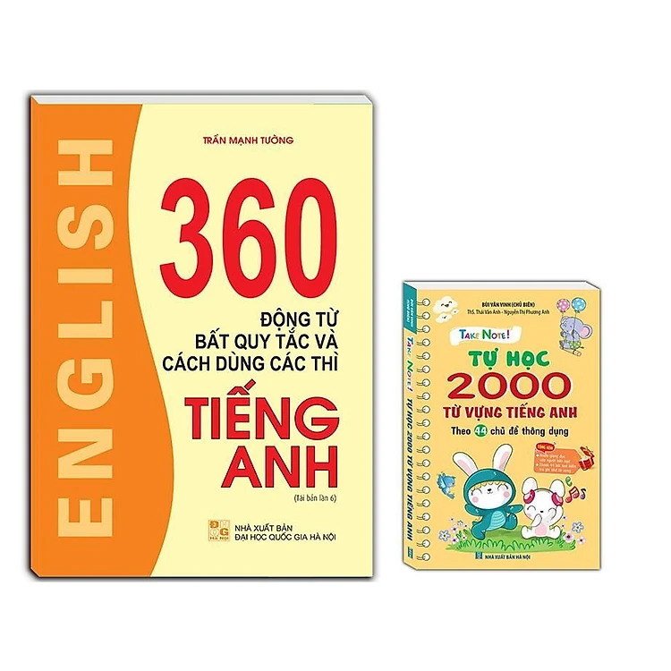 Sách - 360 Động Từ Bất Quy Tắc - Sách Trắng Đen + Take Note - Tự Học 2000 Từ Vựng Tiếng Anh - Minh Thắng