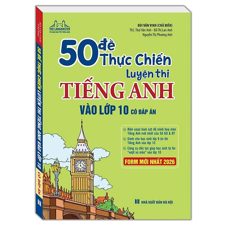 Sách 50 Đề Thực Chiến Luyện Thi Tiếng Anh Vào Lớp 10 (Có đáp án)