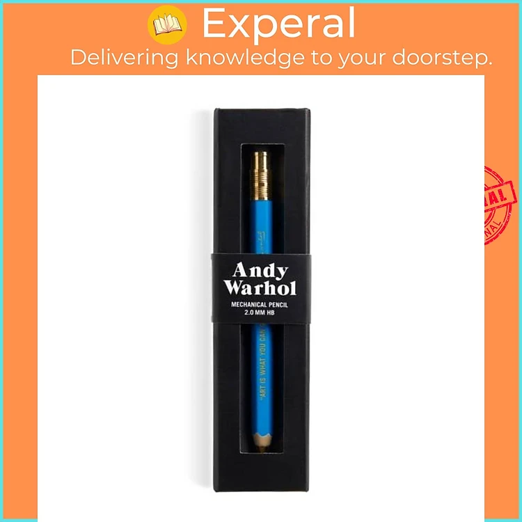 ---------------------------------------- The Andy Warhol Philosophy Mechanical Pencil features Warhol’s famous quote “Art is what you can get away with” in gold foil, packaged in a sturdy, windowed reusable box. It uses a 2mm pencil lead which is standard for mechanical pencils. The pencil lead and erasers are both refillable (not included with the pencil).• Box Size: 1.77 x 6.92 x 0.83”, 45 x 176 x 21 mm
