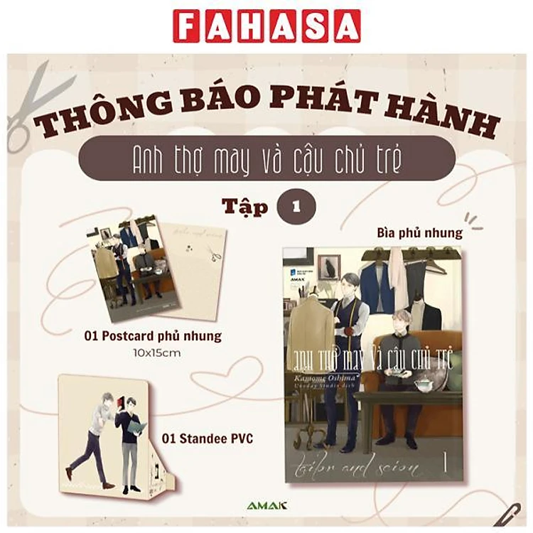 Sách - Anh Thợ May Và Cậu Chủ Trẻ - Tập 1 - Tặng Kèm Bìa Áo Rời Phủ Nhung + Postcard Phủ Nhung + PVC Standee