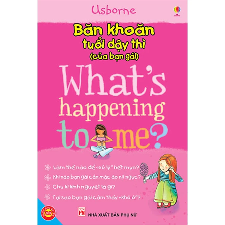 WHAT'S HAPPENING TO ME? (GIRL) Tuổi dậy thì sẽ trở nên đơn giản hơn nếu bạn được trang bị những kiến thức cần thiết. Với cách trình bày chân thực, dễ hiểu, cuốn sách này sẽ cung cấp cho bạn những thông tin hữu ích và chuẩn xác về những dấu hiệu thay đổi trên cơ thể - kể cả những diễn biến tâm lý. Hãy cùng lật mở những trang sách bạn sẽ được biết tất cả những gì bạn đang nóng lòng muốn tìm hiểu về giai đoạn quan trọng này của cuộc đời mỗi người. Sách được trình bày đẹp, in nhiều màu trên chất liệu giấy ngoại nhập. Cuốn sách là một món quà vô giá trang bị những kiến thức cần thiết nhất cho các bạn tuổi Teen trong giai đoạn quan trọng của cuộc đời. Sách do công ty TNHH TM&DV văn hoá Đinh Tị mua bản quyền của NXB Usborne (Anh) và được phát hành trên toàn quốc.