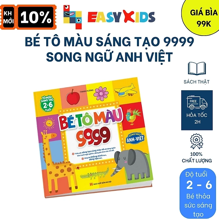 Sách - Bé Tô Màu 9999 - Tô Màu Sáng Tạo - Song Ngữ Anh Việt Dành Cho Trẻ Từ 2-6 Tuổi