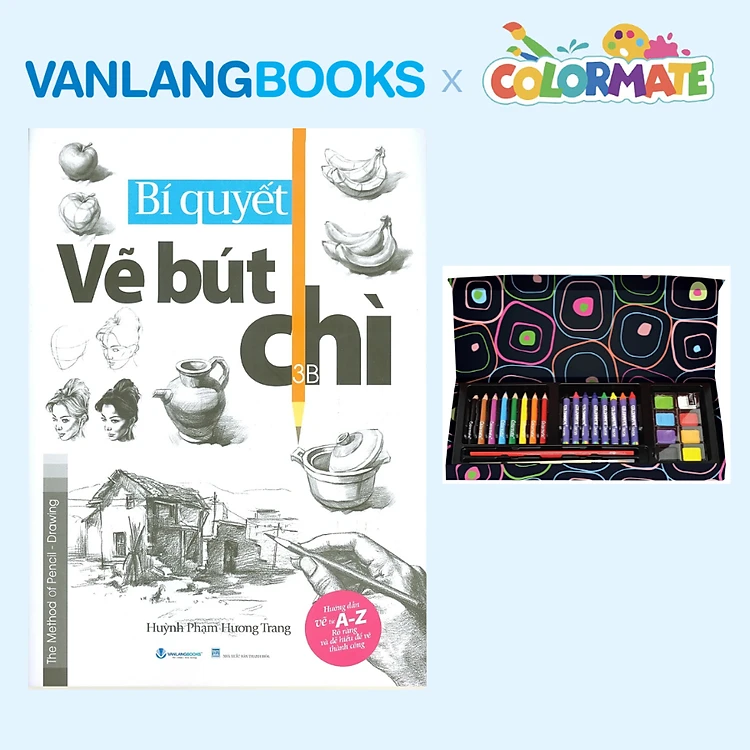 Sách Bí Quyết Vẽ Bút Chì + Bộ Màu Vẽ Đa Năng Hộp Giấy M28 - Vanlangbooks x Colormate