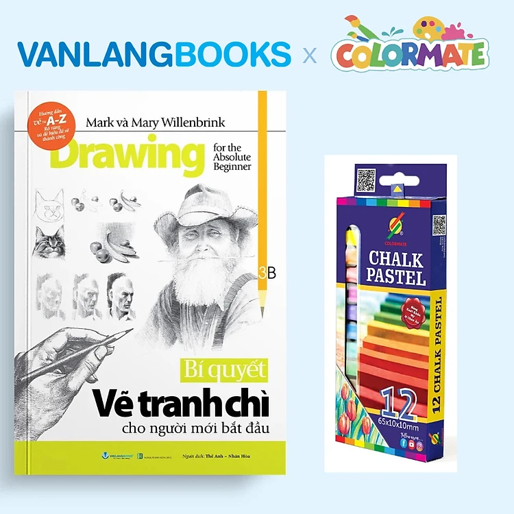 Sách Bí Quyết Vẽ Tranh Chì Cho Người Mới Bắt Đầu + Hộp Giấy 12 Cây Phấn Màu - Vanlangbooks x Colormate
