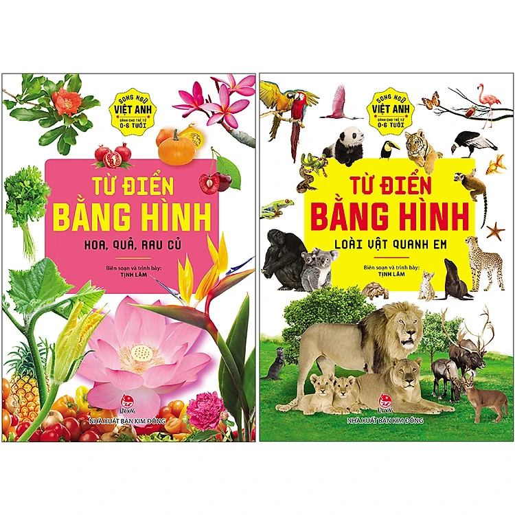 Sách Bộ 2 Quyển Từ Điển Bằng Hình : Loài Vật Quanh Em+ Hoa, Quả, Rau Củ (Tái Bản 2020)-Song Ngữ Việt - Anh Dành Cho Trẻ Từ 0-6 Tuổi