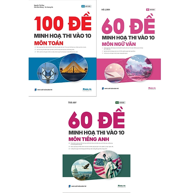 Sách - Bộ Đề Minh Họa Thi Vào 10 Môn Toán + Ngữ Văn + Tiếng Anh 2026 (Moon)