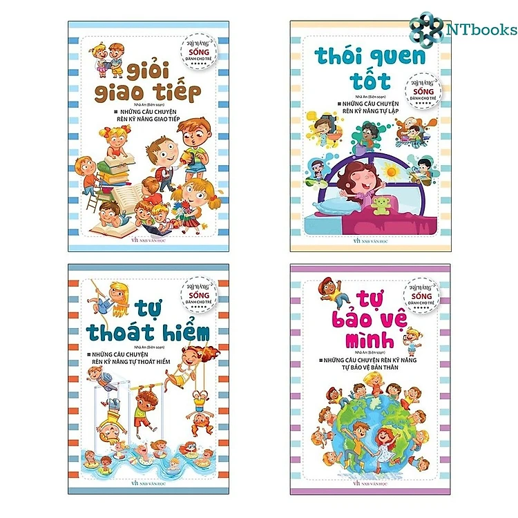 Sách - Bộ sách 4 Cuốn Kỹ Năng Sống Dành Cho Trẻ: Thói Quen Tốt, Tự Bảo Vệ Mình, Giỏi Giao Tiếp, Tự Thoát Hiểm