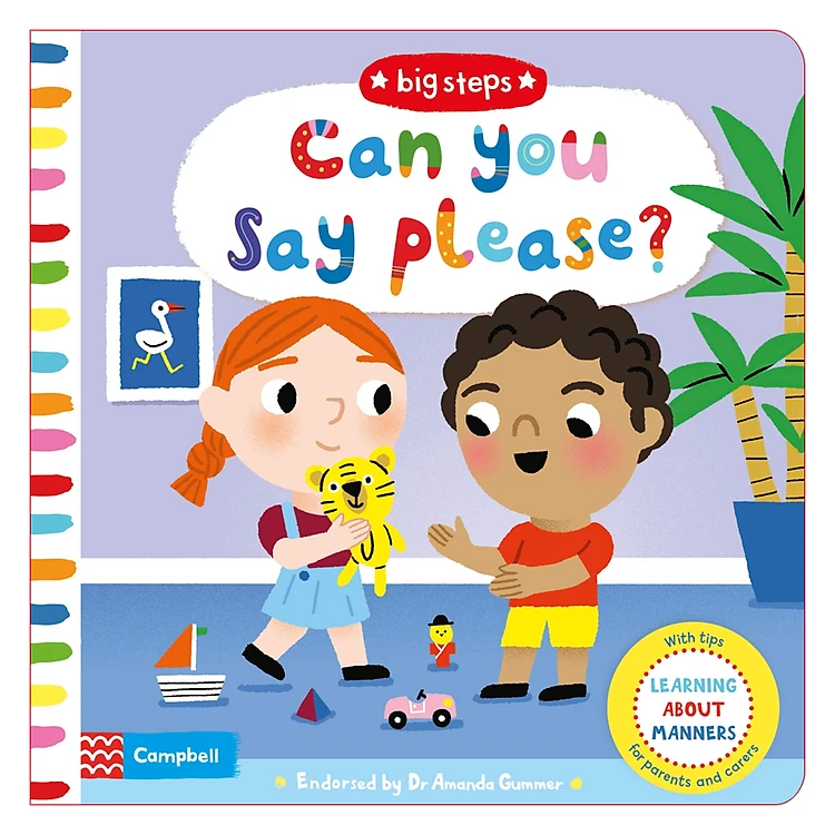 The Big Steps series is designed to help young children deal with new experiences in their lives. In Can You Say Please?, Tom and Nancy share their toys and practise their good manners. This novelty book with a sweet story has fun flaps to lift and mechanisms to move as well as practical tips for parents and carers on each page, endorsed by leading Early Years Consultant, Dr Amanda Gummer.With delightful illustrations from Marion Cocklico, Can You Say Please? is the perfect book for sharing with your toddler and talking about how to behave kindly and considerately towards other people.For more toddler tips, read We're Having a Baby, I'm Not Sleepy, No More Nappies, I'm Starting Nursery and We're Going to the Doctor.