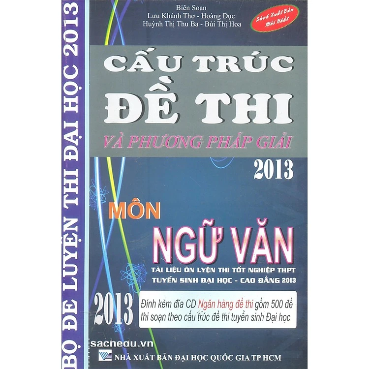Nhà xuất bản Đại học Quốc gia Tp HCM giới thiệu bộ sách: CẤU TRÚC ĐỀ THI 2013 VÀ PHƯƠNG PHÁP GIẢI, Sách gồm 6 cuốn: Toán - Lý - Hoá - Sinh - Văn - Anh, mỗi cuốn dày 450 trang được biên soạn theo chương trình sửa đổi, bổ sung mới nhất của BỘ GIÁO DỤC ĐÀO TẠO áp dụng cho kỳ thi THPT và tuyển sinh Đại học 2013.