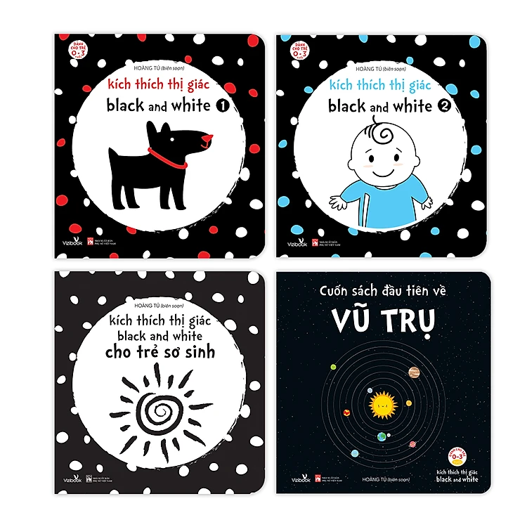 Sách cho bé - Kích Thích Thị Giác - Black and White Cho Trẻ Sơ Sinh - Combo 4 cuốn - Lật mở zigzag - Bồi cứng hoàn toàn