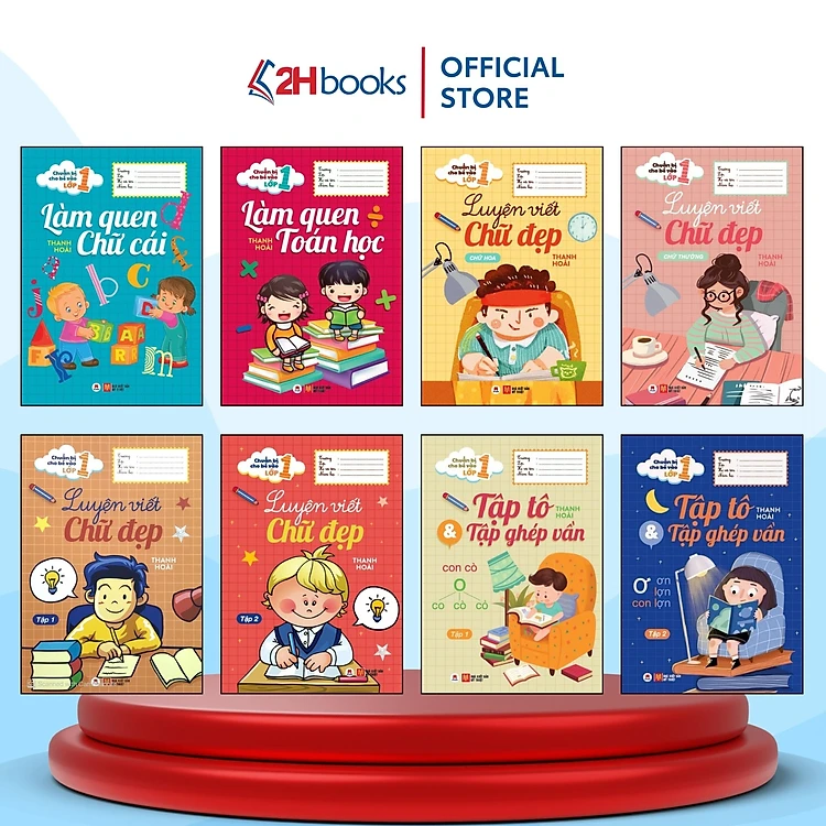 Sách- Chuẩn Bị Cho Bé Vào Lớp 1, Combo 8 cuốn Làm Quen Chữ Cái, Toán Học, Luyện Viết, Tập Tô, Tập Ghép Vần- 2HBooks