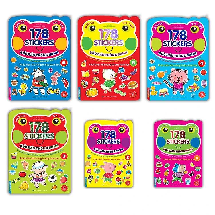 Sách - Combo 178 stiker (6 cuốn) Bóc dán hình thông minh phát triển khả năng tư duy toán học IQ EQ CQ (3-4 tuổi) ( Tặng kèm Poster Quy Tắc An Toàn Cho Bé)