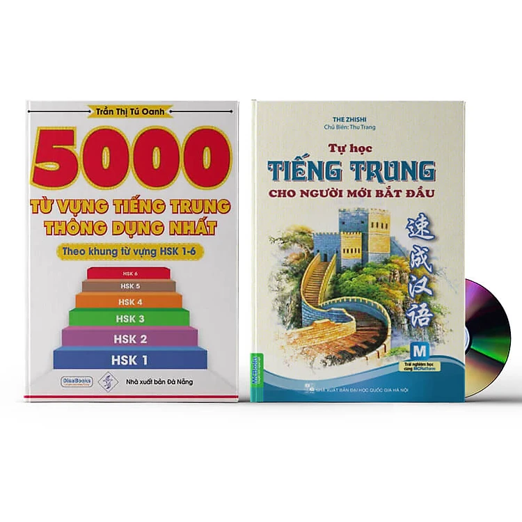 Sách- Combo 2 sách 5000 từ vựng tiếng Trung thông dụng nhất theo khung HSK từ HSK1 đến HSK6+Tự học tiếng Trung cho người mới bắt đầu + DVD tài liệu