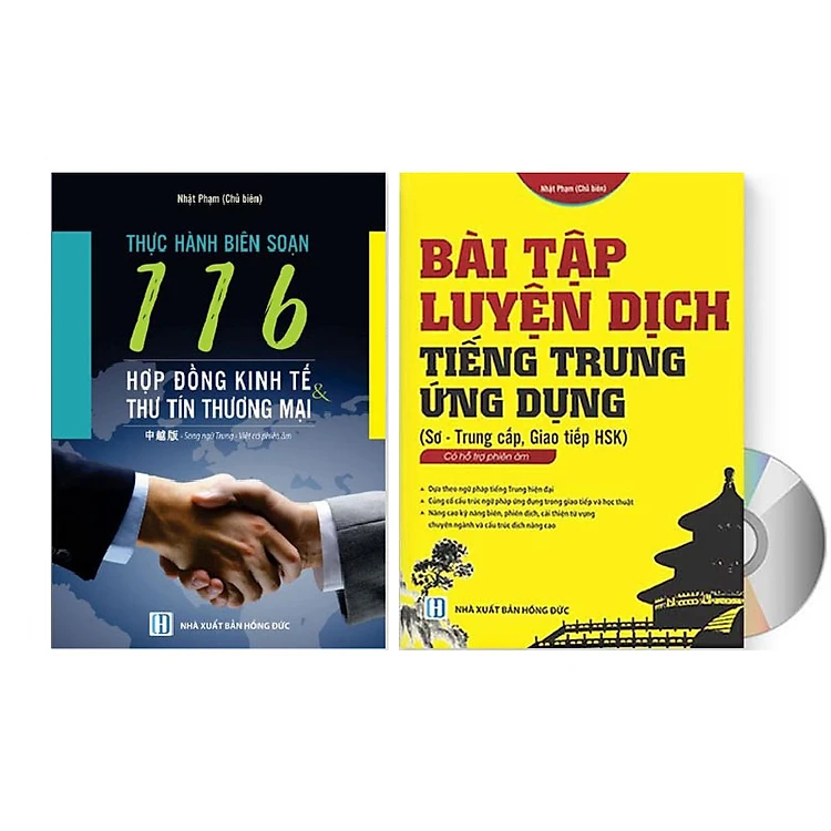 Sách- Combo 2 sách Bài tập luyện dịch tiếng Trung ứng dụng (Sơ -Trung cấp, Giao tiếp HSK có mp3 nghe, có đáp án)+ 116 Hợp đồng Kinh Tế Thư Tín Thương Mại song ngữ Trung Pinyin + DVD tài liệu