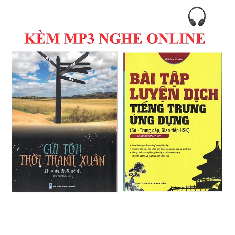 Sách- Combo 2 sách Bài tập luyện dịch tiếng Trung ứng dụng (Sơ -Trung cấp, Giao tiếp HSK có mp3 nghe, có đáp án) + gởi tôi thời thanh xuân song ngữ Trung việt có phiên âm có mp3 nghe + DVD tài liệu