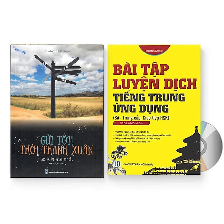 Sách- Combo 2 sách Bài tập luyện dịch tiếng Trung ứng dụng (Sơ -Trung cấp, Giao tiếp HSK có mp3 nghe, có đáp án) + gởi tôi thời thanh xuân song ngữ Trung việt có phiên âm có mp3 nghe + DVD tài liệu