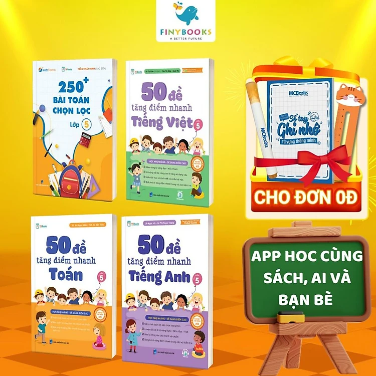 Sách - Combo 250 Bài Toán Chọn Lọc Và 50 Đề Tăng Điểm Nhanh Toán - Tiếng Việt - Tiếng Anh Lớp 4 - TKBooks