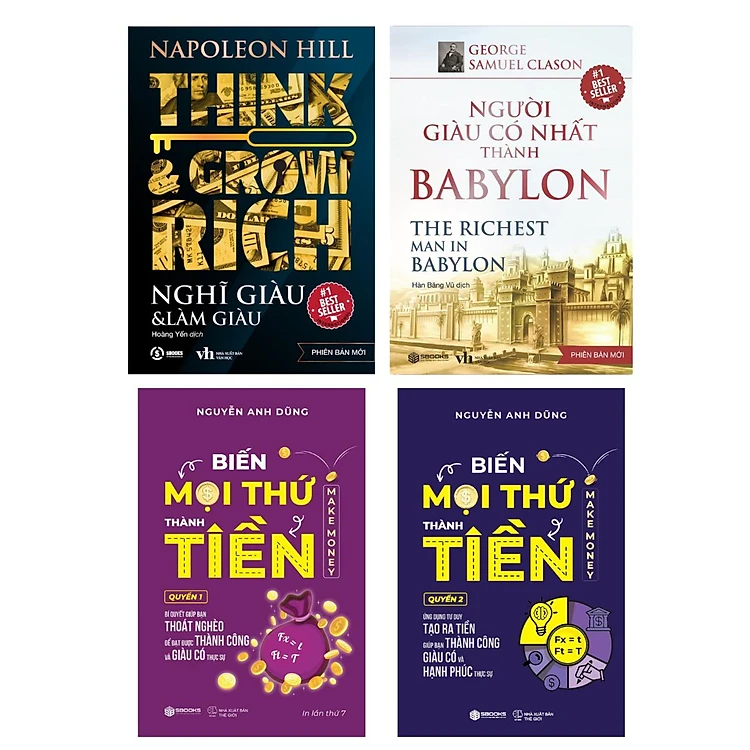 Sách Combo 4 Cuốn : Nghĩ Giàu Làm Giàu - Người Giàu Có Nhất Thành Babylon - Biến Mọi Thứ Thành Tiền Quyển 1+2 - SBOOKS