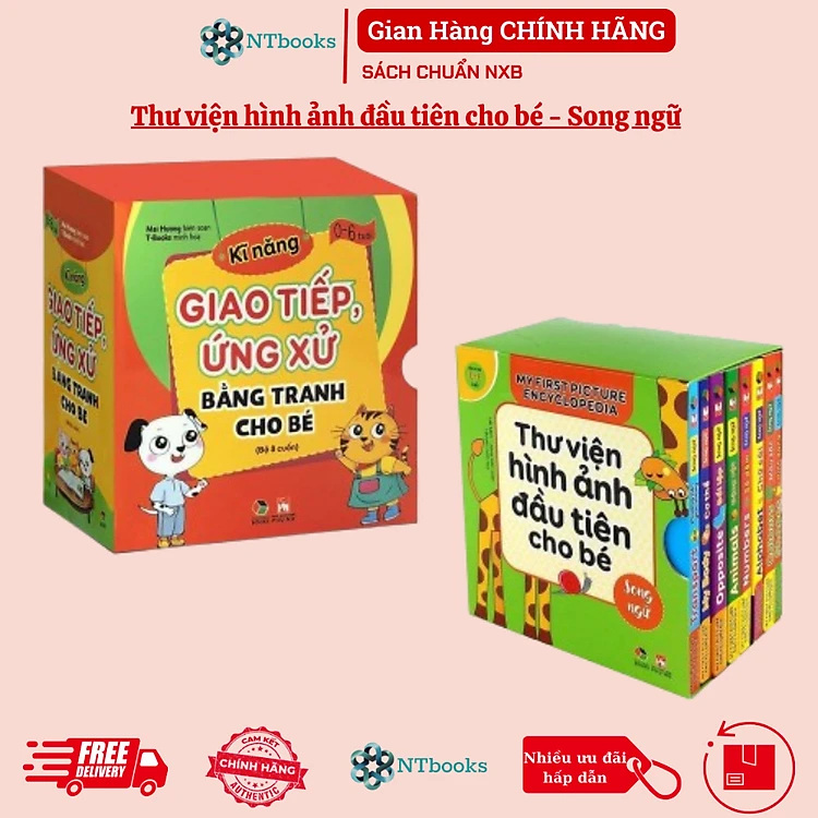 Sách - Combo Bộ hộp thư viện hình ảnh đầu tiên cho bé từ 0 - 6 tuổi song ngữ và Kỹ năng giao tiếp ứng xử bằng tranh